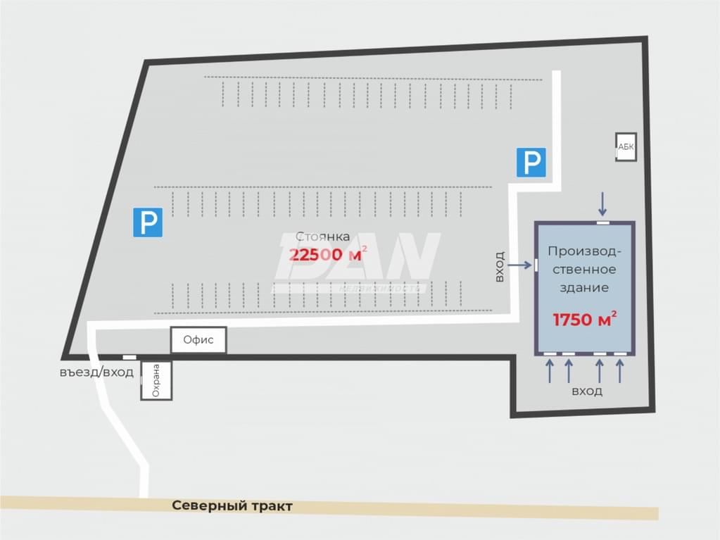 Здание расположено на собственной охраняемой закрытой территория с круглосуточным доступом 24/7. Земельный участок благоустроен: освещается, полностью огорожен, с круглосуточным пунктом пропуска и охраны и находится под видеонаблюдением.