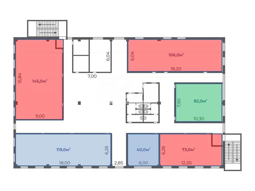 Технические характеристики: Площадь: 82 кв.м. (есть свободные площади на этаже 40 и 120 кв.м.) Этаж: 3/3 Лифт: нет Планировка: свободная Количество входов: 2 Высота потолка: 3 м Коммунальные сети: центральные Санузел: на этаже Ремонт: Косметический Наземная парковка перед зданием