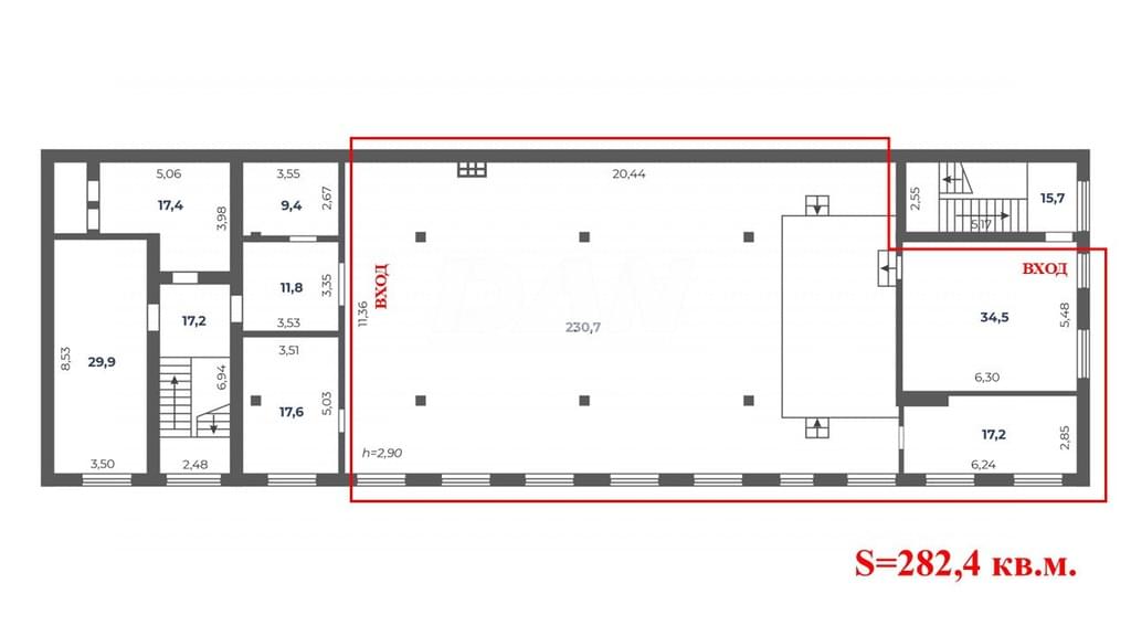 Площадь помещения: 282,4 кв.м.