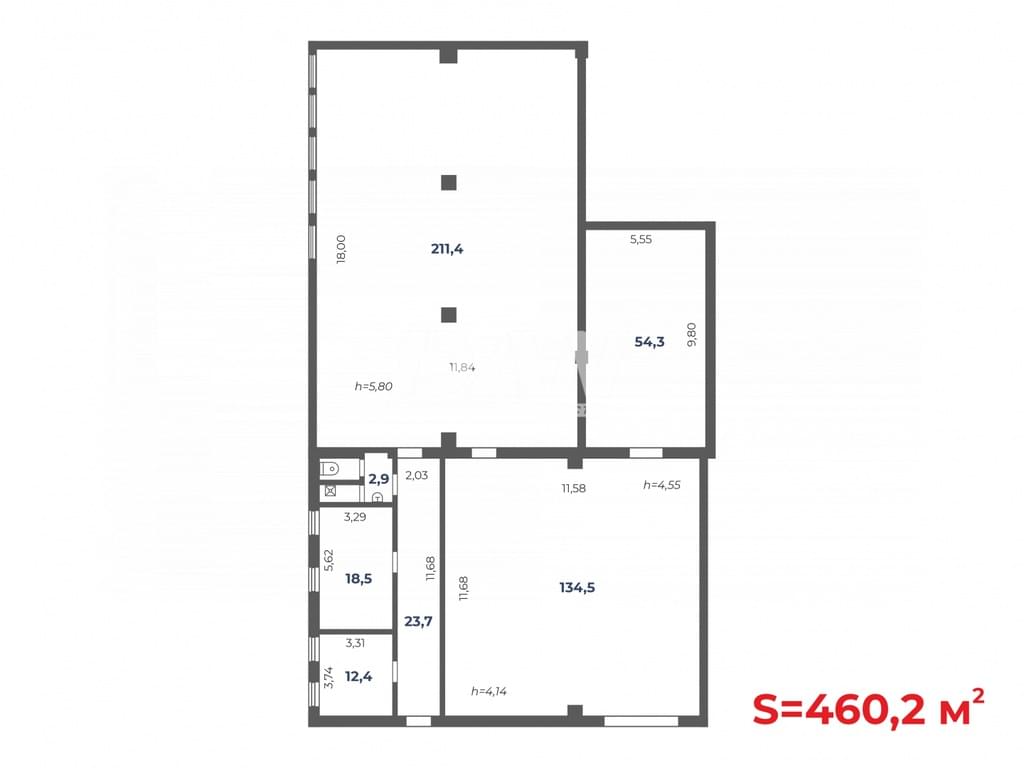 Высота потолка: 4,14-5,80 м.