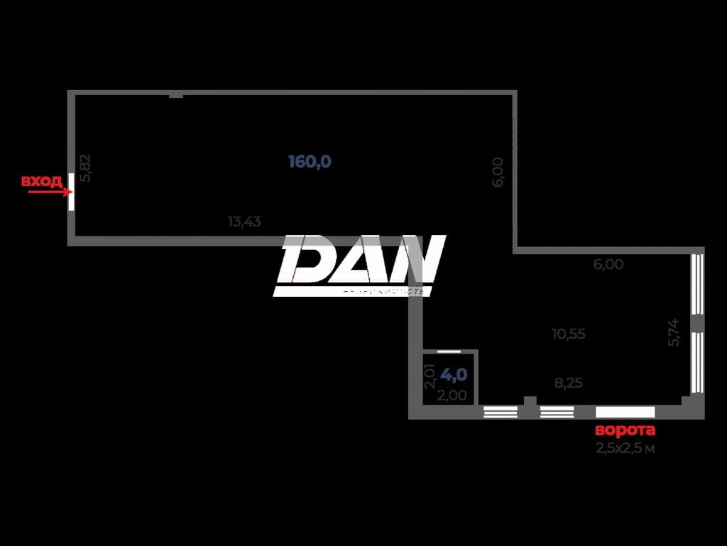 Ворота: 2,5*2,5 м.