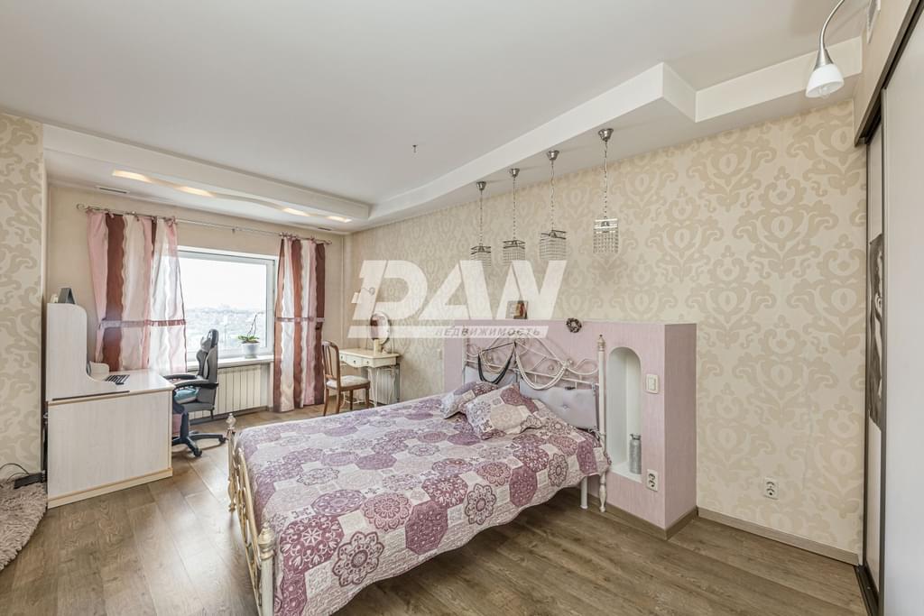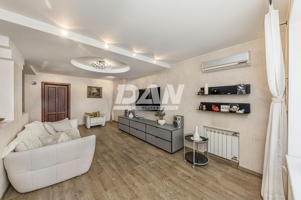 Общая площадь квартиры 130 м², не считая балконов. Два уровня- 10-й и 11-й этажи. Ha первом уpовне кваpтиры pacположeны: просторная кухня-столовая с теплым полом, большая гостиная, в которой можно собираться дружной семьей, с выходом на лоджию, санузeл, гардеробная и спальня. Высота потолков на 1 этаже 2,5 м.
