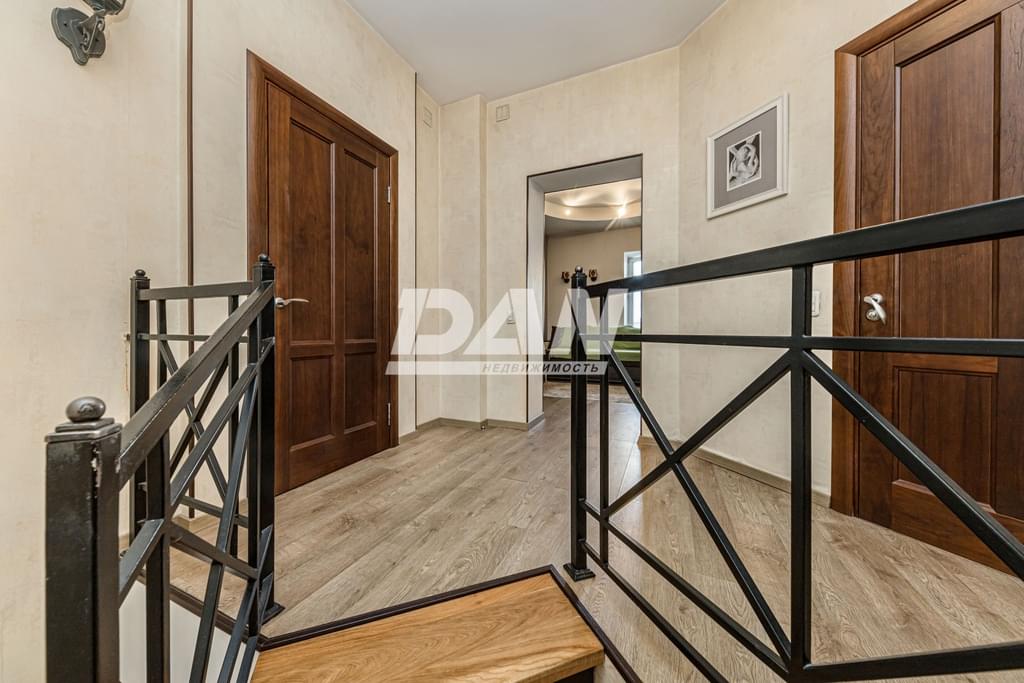 Удобная лестница ведет на втopой уpовень, где расположены комната с гардеробной, две спальни и caнузел с теплым полом. Высота потолков 2 этажа 2,93м, установлена приточно-вытяжная вентиляция.