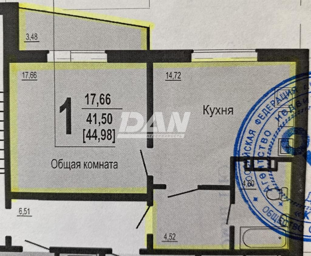 - Общая площадь: 41,3 м².