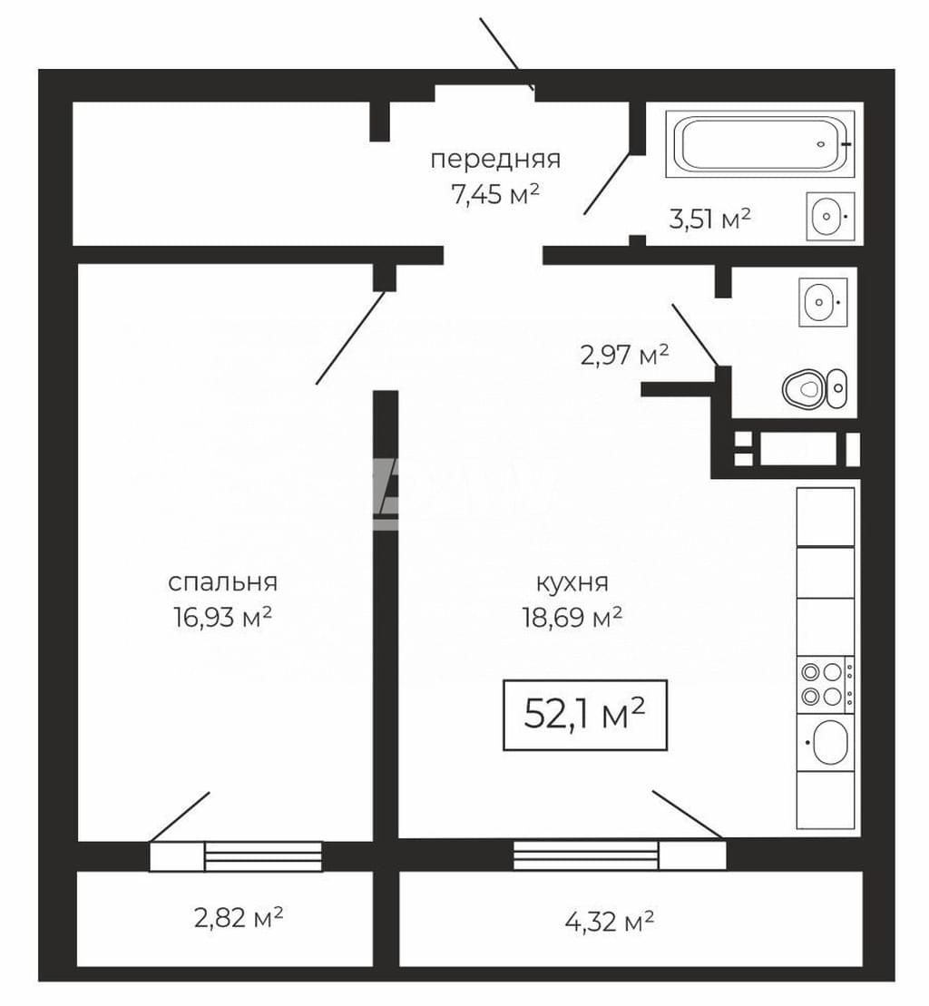 Представляем к продаже просторную 1-комнатную квартиру площадью 52.1 кв.м. В квартире выполнен базовый ремонт от застройщика, который позволяет сразу заехать и жить, или же послужит отличной основой для воплощения ваших собственных дизайнерских идей. Приятным бонусом новым владельцам останется функциональный кухонный гарнитур.