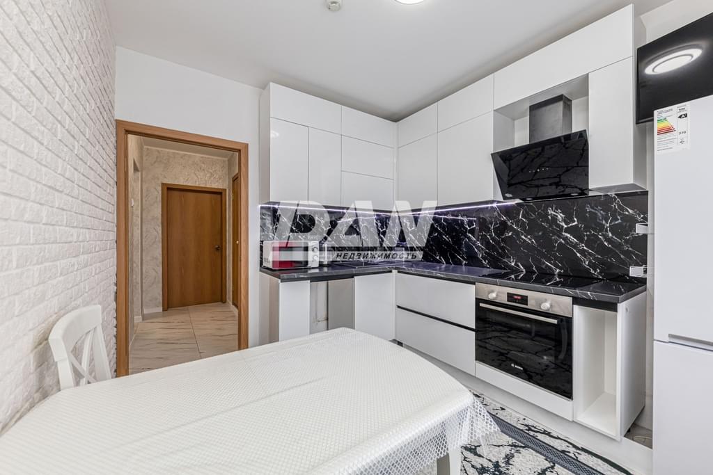 - Новая кухня: Кухонный гарнитур новый, ещё в защитной плёнке. Установлена современная техника и дорогие доводчики.