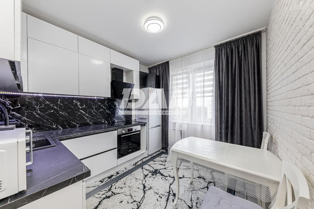 - Новая кухня: Кухонный гарнитур новый, ещё в защитной плёнке. Установлена современная техника и дорогие доводчики.