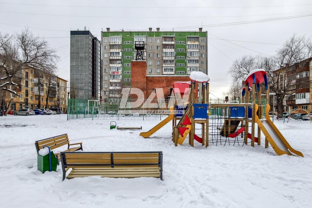 Просторный двор оборудован детской площадкой, создавая комфортную атмосферу для семейного отдыха и занятий спортом.