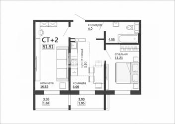 2-комнатная квартира 51,9 м