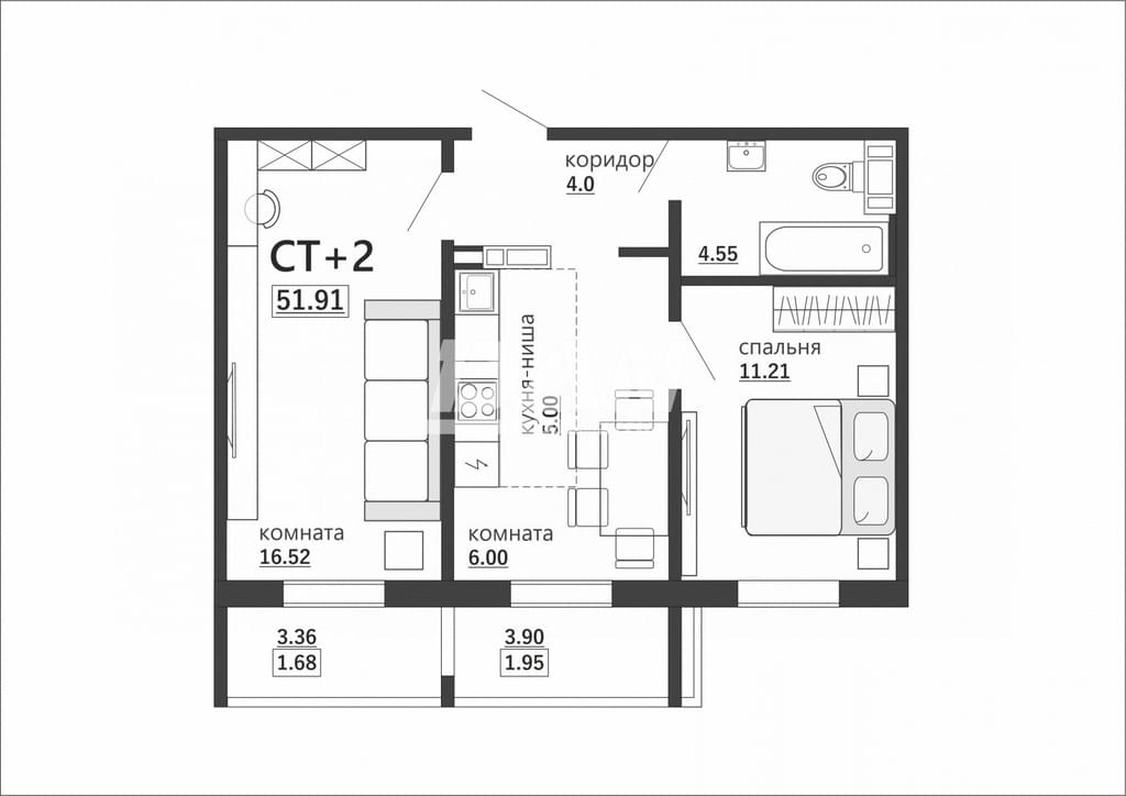 10 различных вариантов планировочных решений: от однокомнатных до трёхкомнатных квартир, площадью от 37 до 66 кв.м. Отличительная черта этого дома, что нет студий.