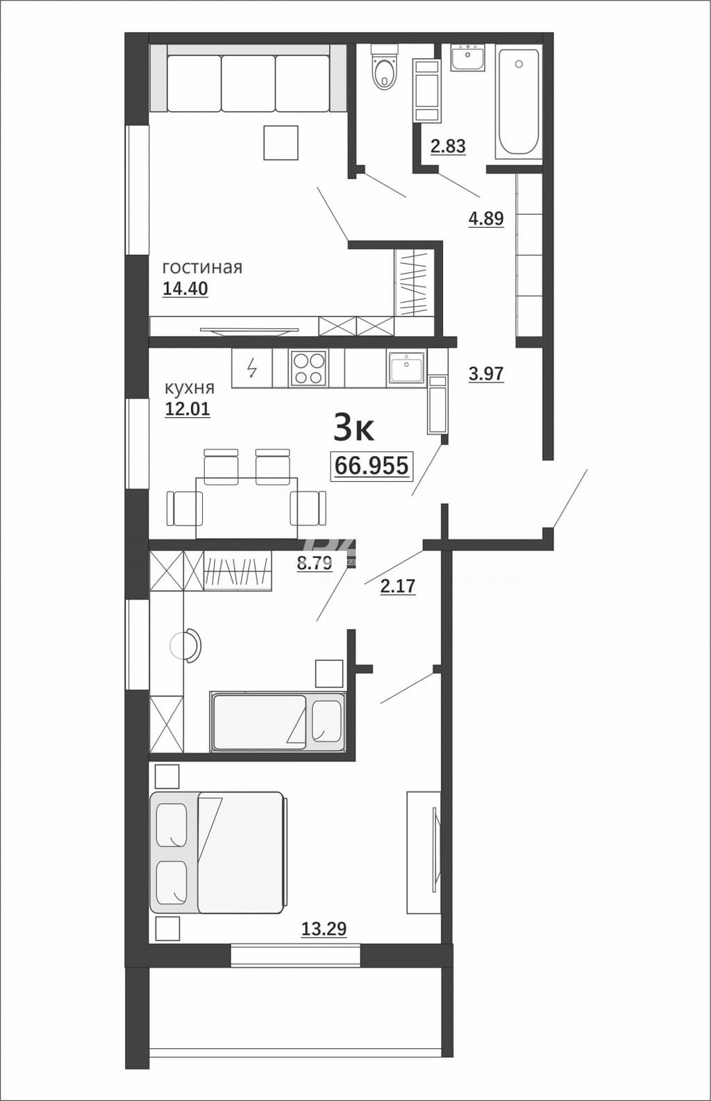 10 различных вариантов планировочных решений: от однокомнатных до трёхкомнатных квартир, площадью от 37 до 66 кв.м. Отличительная черта этого дома, что нет студий.