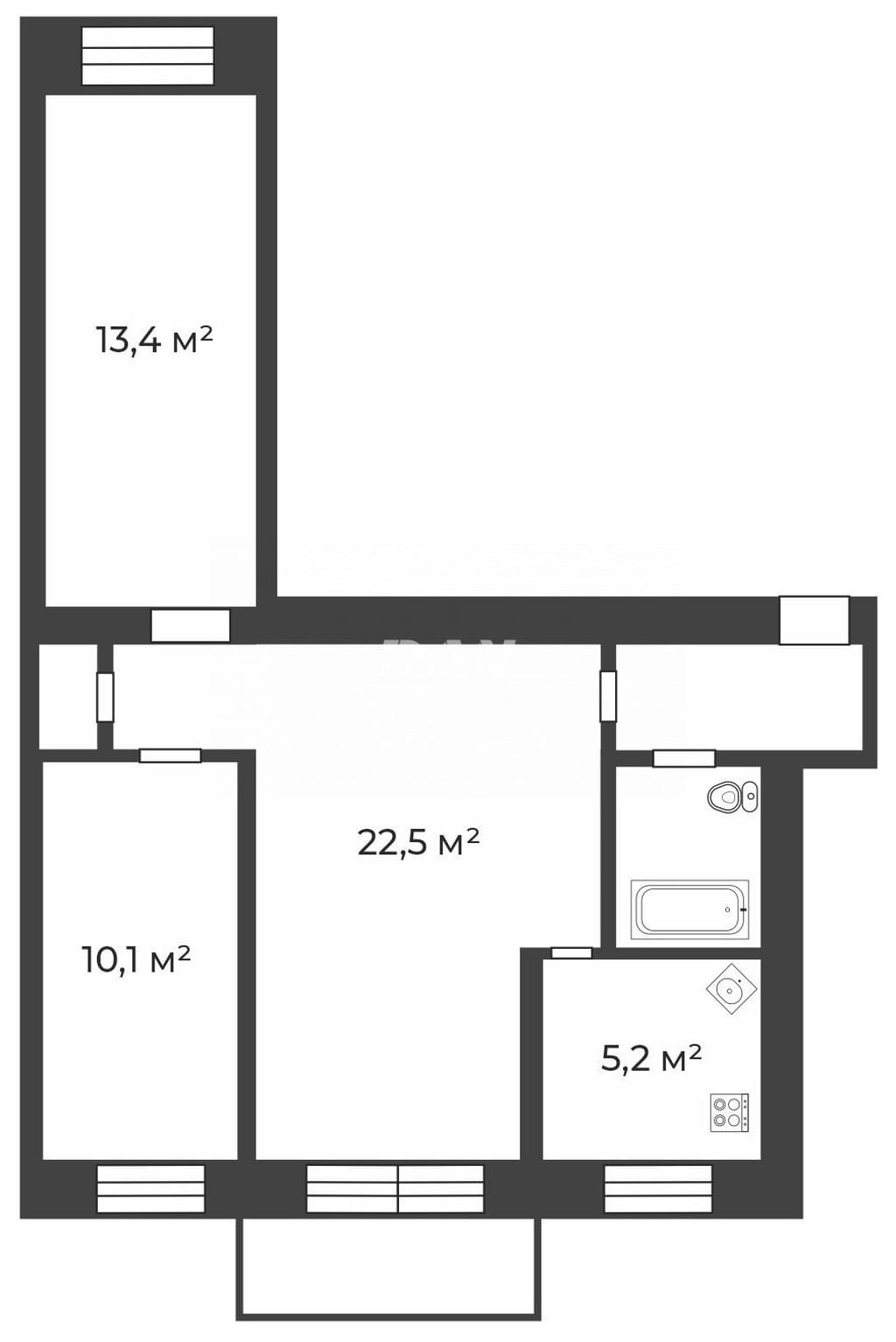 Внутреннее пространство квартиры, включает светлую гостиную площадью 22 м², две спальни по 13 и 10м² соответственно и небольшую, но функциональную кухню размером 5 м². В квартире есть балкон. Установлены евроокна и балконная дверь.