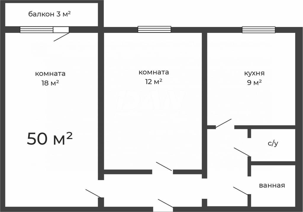 Общая площадь 50,4 кв.м.: комфортное пространство для жизни вашей семьи.