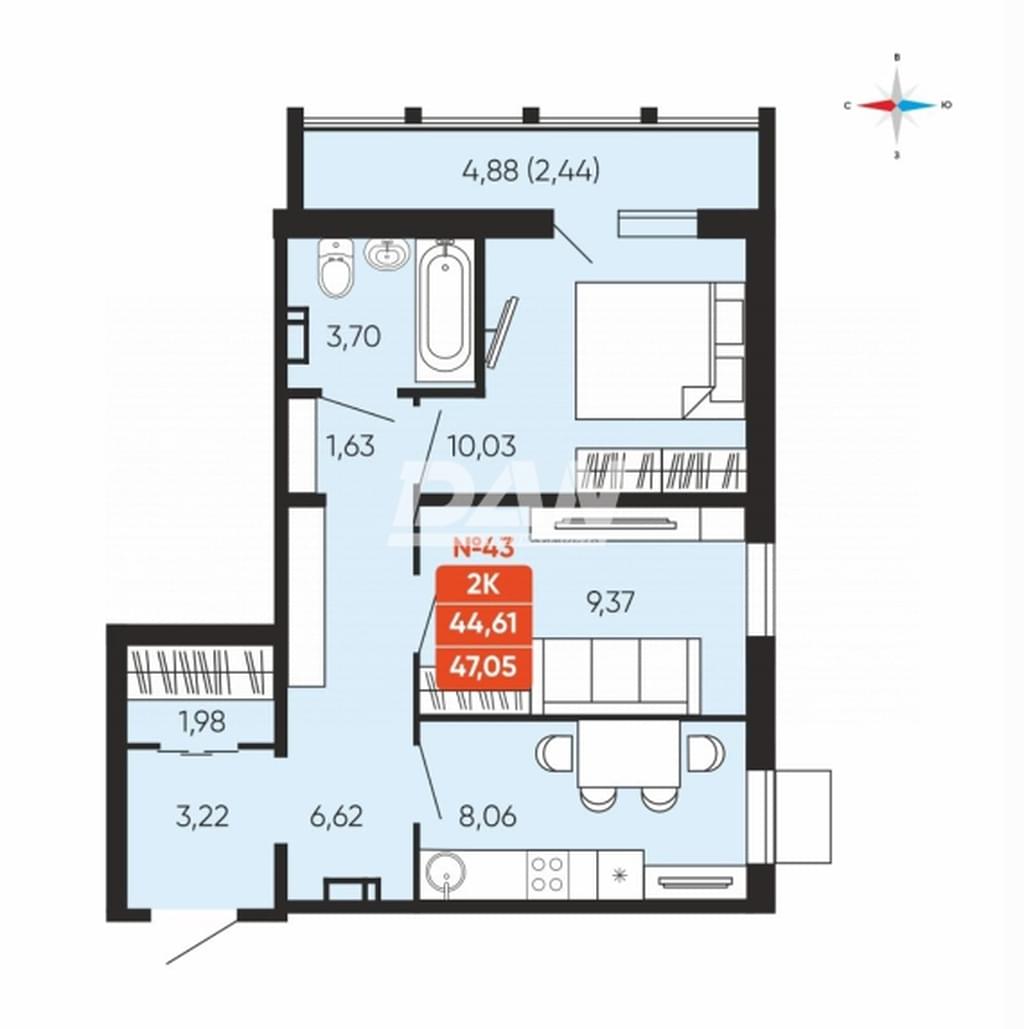 2-комнатная квартира, 47,1 м²