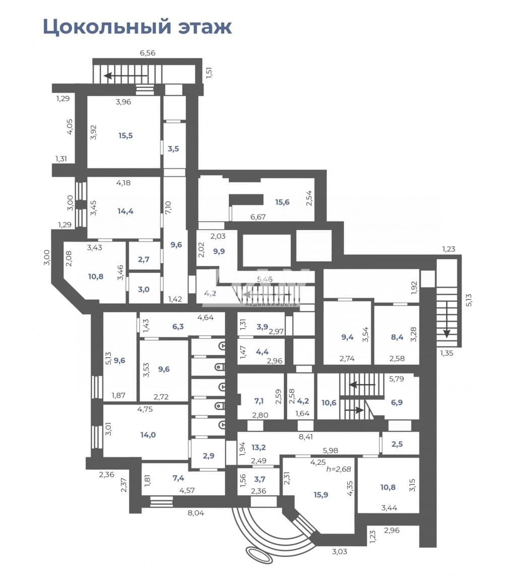 Цоколь: S=267,3 кв.м.
