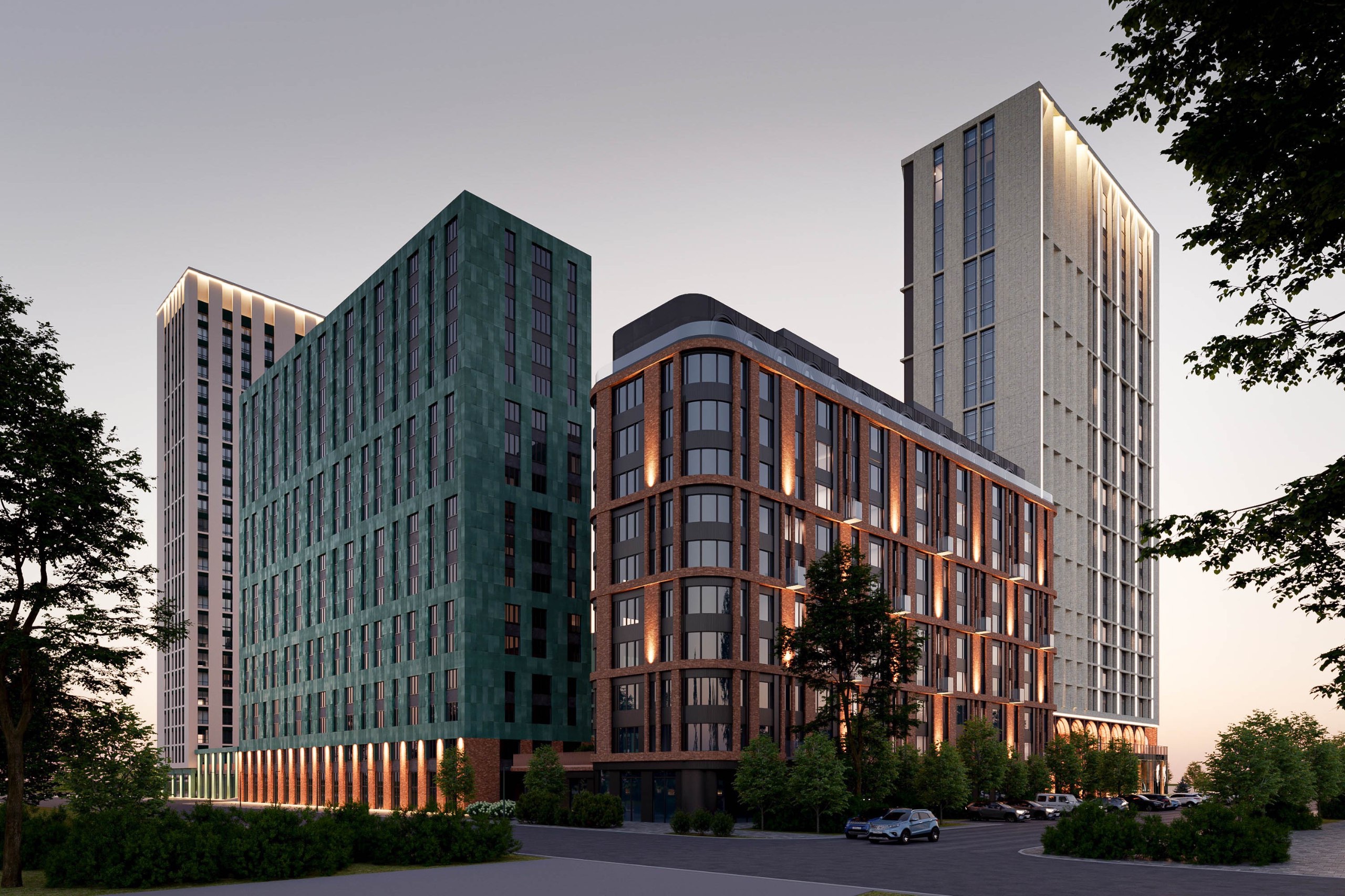 Двор комплекса будет закрытым и свободным от автомобилей, что повышает безопасность и комфорт для жителей.