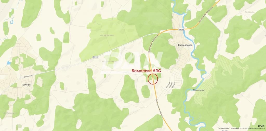 Земельный участок 1 (Троицк -Челябинск) Право собственности: Договор аренды до 21.06.2060 года Площадь: 7 004 кв.м. Коммуникации: автономные Эл-во: 70 кВт (на обе АЗС) Объект недвижимости (операторская АЗС): S=207 кв.м. Объём нефтехранилища: 150 куб. (3 емкости по 50 куб.) Имущество и оборудование: топливораздаточные колонки (4 шт.), информационное оборудование, поры освещения, ТЭП, наружные сети.