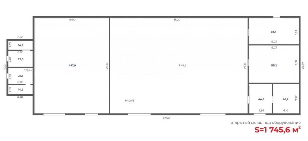 Площадь помещений для персонала 341 м2 Высота потолка: от 3,0м. Пол: бетон