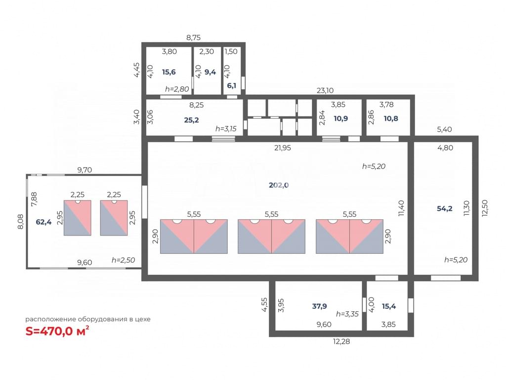 - Цех обработки Камня Общая площадь1676 кв.м. Площадь производственного помещения 1595,6 м2 Высота потолка: 12,4 м. (в цехе) Пол: бетон Кол-во ворот: 2 шт. (4,2*4 м.) Грузоподъемное оборудование: Кран-балка до 5 т. (3 шт.) Помещение Газовой котельной площадь 80,4 м2 Оборудован 2 напольными газовыми котлами, ГРПШ и узлом учета