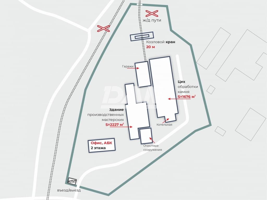 Продаются производственно-складской комплекс общей площадью 4 707 кв.м., расположенные на собственном земельном участке, обеспеченные всеми необходимыми коммуникациями, в том числе достаточной электрической мощностью, собственной газовой котельной, крановым оборудование, открытой площадкой с козловым краном для разгрузки любого вида сырья и продукции. В данный момент объект используется в качестве цеха механической обработки камня. Объект может быть продан вместе с оборудованием.