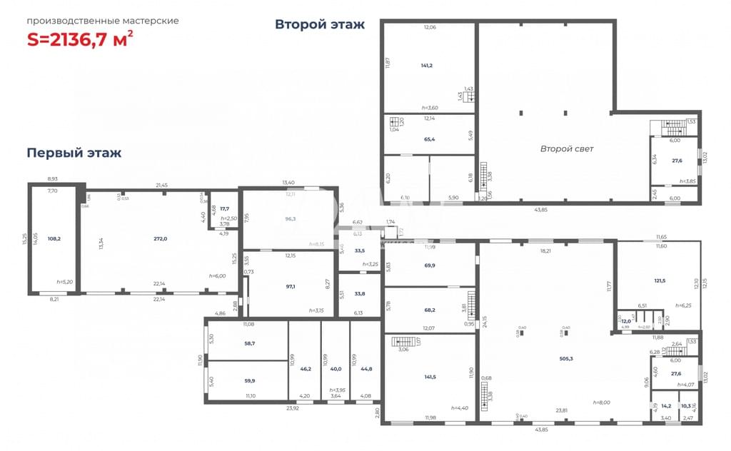 В состав производственного комплекса входит: - Административное здание – офис и бытовой корпус, площадь: 789,5 кв.м Этажность - 2 этажа и подвал; Площадь подвала 164,4м2 Площадь 1 этажа 314,4м2 Площадь 1 этажа 310,9м2 Высота потолков 3,0м Ремонт: Евроремонт офисов 2 этажа и офисная отделка бытовых помещений Санузлы 2 шт. и душевая 1 шт Входные группы - 2 шт