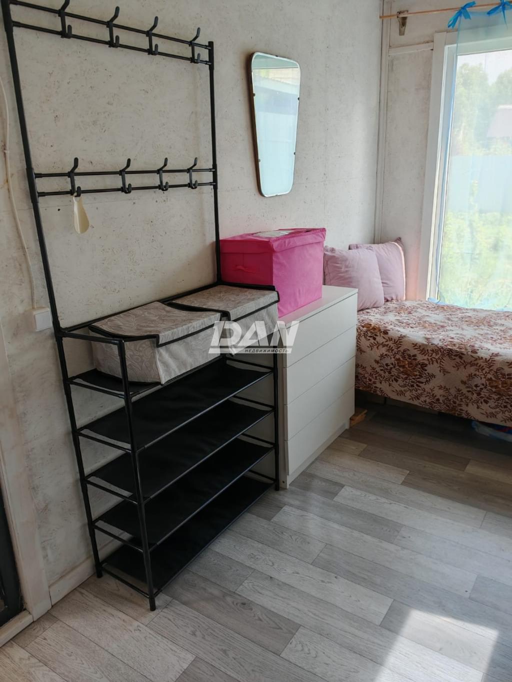 Планировка:Каркасный дом (постройка) возведен в 2022 году из лиственницы (внутри и снаружи) с возможностью всесезонного проживания. На данный момент в постройке спальня с 2х-спальной кроватью из массива дерева и совмещенный санузел, но можно использовать как место отдыха и/или переделать под собственные нужды (например в баню).