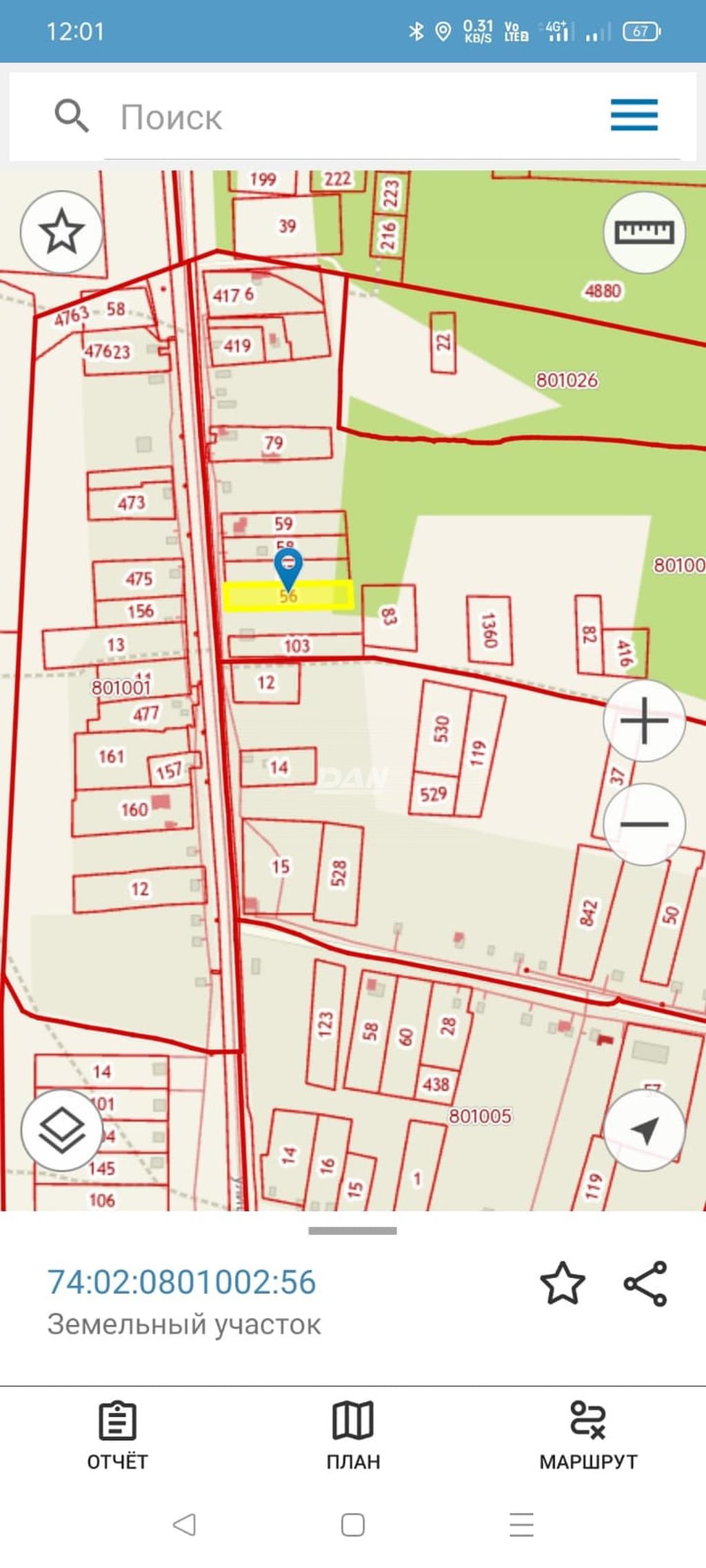 Кадастровый номер участка: 74:02:0801002:56