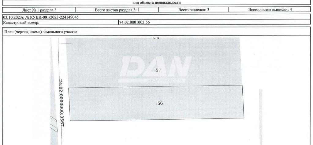 Кадастровый номер участка: 74:02:0801002:56
