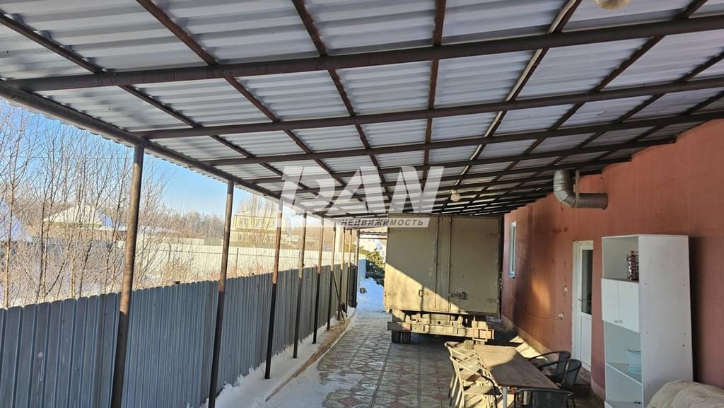 Есть баня, большой навес под автомобили.