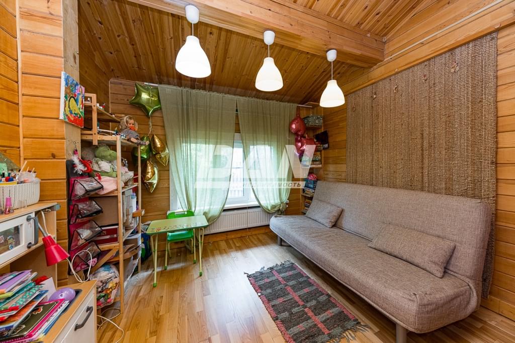 На первом этаже прихожая-тамбур, котельная, санузел с душевой кабиной, спальня/детская, гостиная и кухня. Из кухни выход на крытую веранду, где можно проводить время с мая по ноябрь. Кухонный гарнитур с техникой остается. На втором этаже кабинет и еще две спальни, одна из которых сейчас используется, как гардеробная.