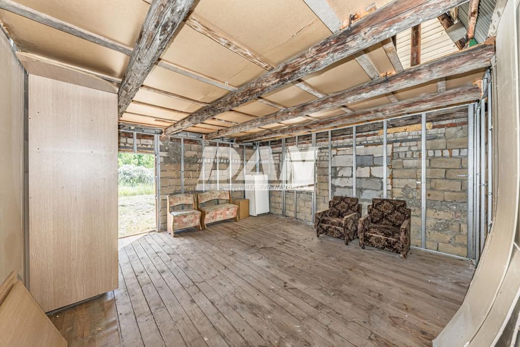 О доме: Двух этажный дом На первом этаже одна комната На мансардном этаже вторая комната На первом этаже пол из досок Стены гипсокартон Забор сетчатый