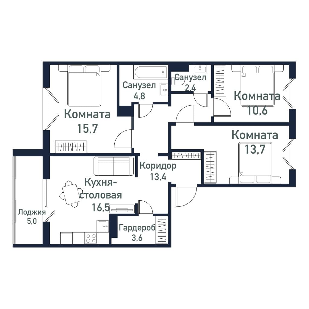 3-комнатная квартира, 80,5 м²