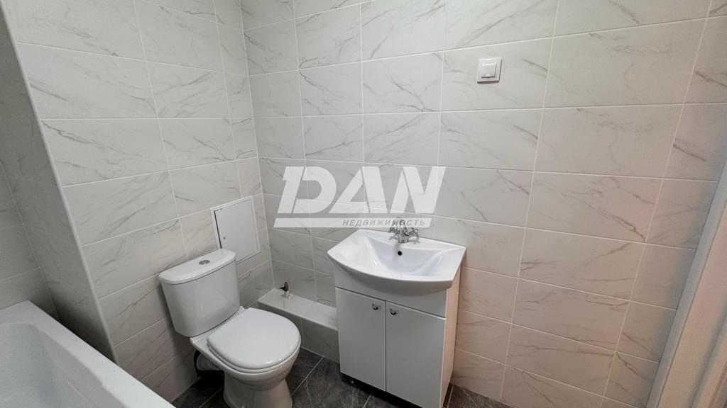 Отделка квартиры выполнена в современном стиле с использованием высококачественных материалов: •Натяжные потолки с закладными для потолочных карнизов •Качественный линолеум на полу во всех комнатах •Стильные межкомнатные двери •Обои в светлых тонах •Увеличенное количество розеток и выключателей, светильник в каждом помещении Санузлы: •Стены – керамическая плитка настенная матовая, пол – керамогранит матовый •Раковина – умывальник с переливом, тумба под раковину, качественные и надежные смесители для ванны и умывальника. •Полотенцесушитель •Ванна – акриловая, 1700 х 700 мм, экран •Унитаз •Тёплые полы в ванной •Оборудованная точка для подключения стиральной машин