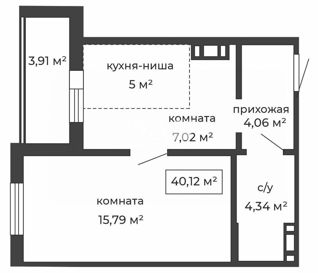 - Кухня-студия: 12 кв.м. – пространство для кулинарных шедевров и уютных вечеров.