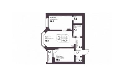 Их средняя площадь 61,4 кв. м. и варьируется от 48,8 до 70,4 кв. м.