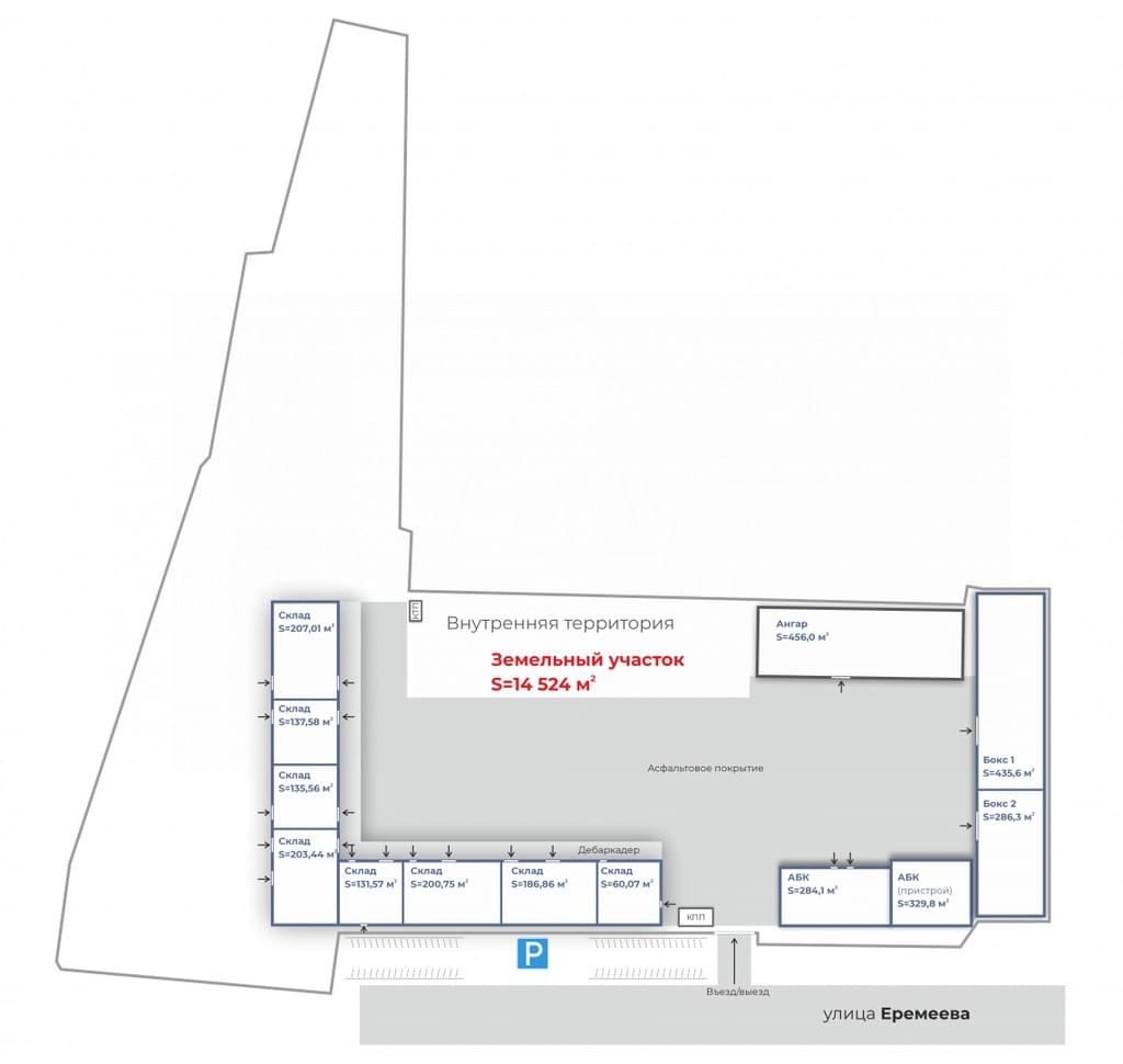 Большая удобная парковка и возможность приема крупнотоннажного грузового автотранспорта, автономное газовое отопление, и круглосуточный доступ превосходно подойдут для размещения различных видов производства, склада готовой продукции, распределительного центра и тд.