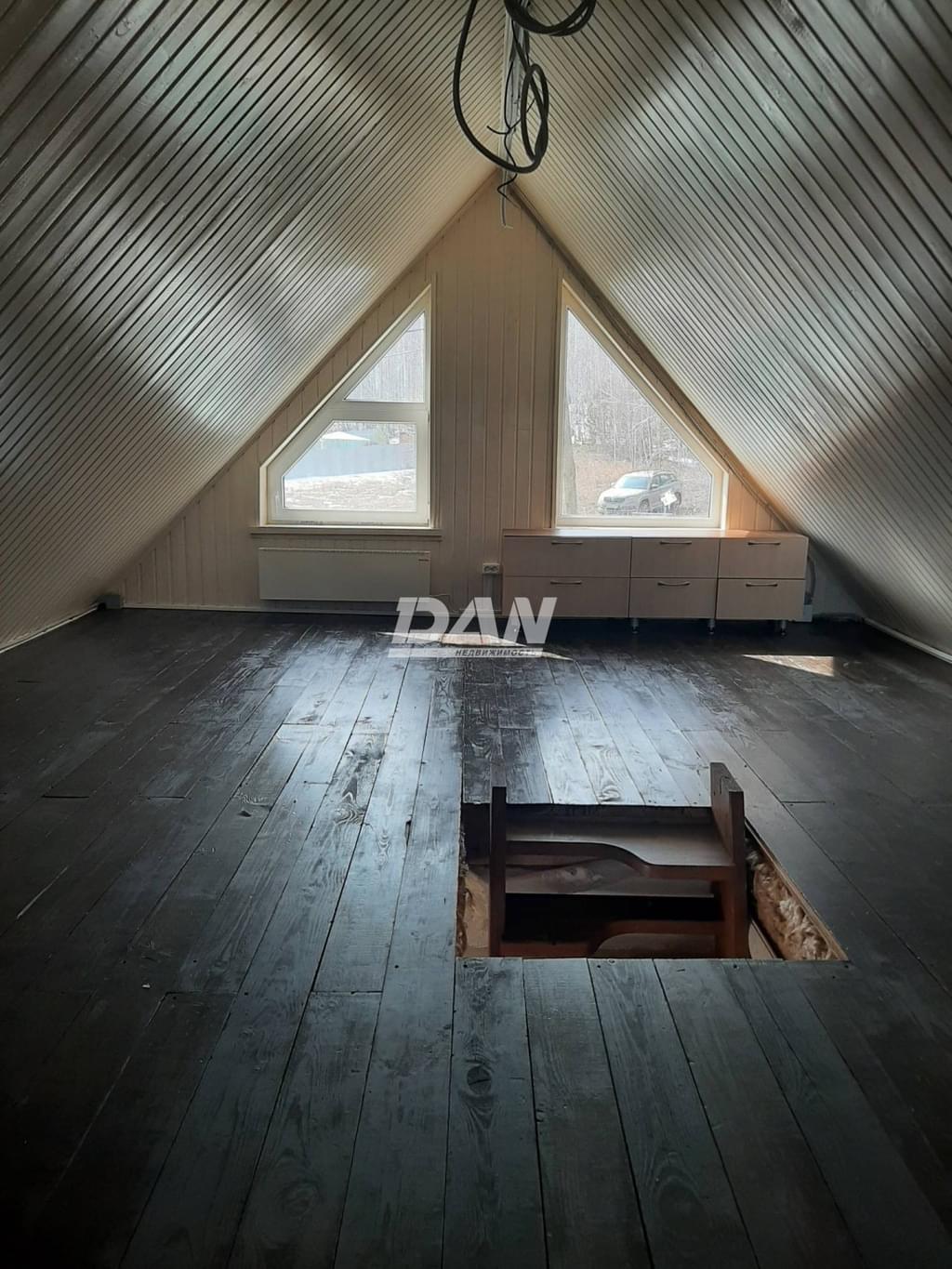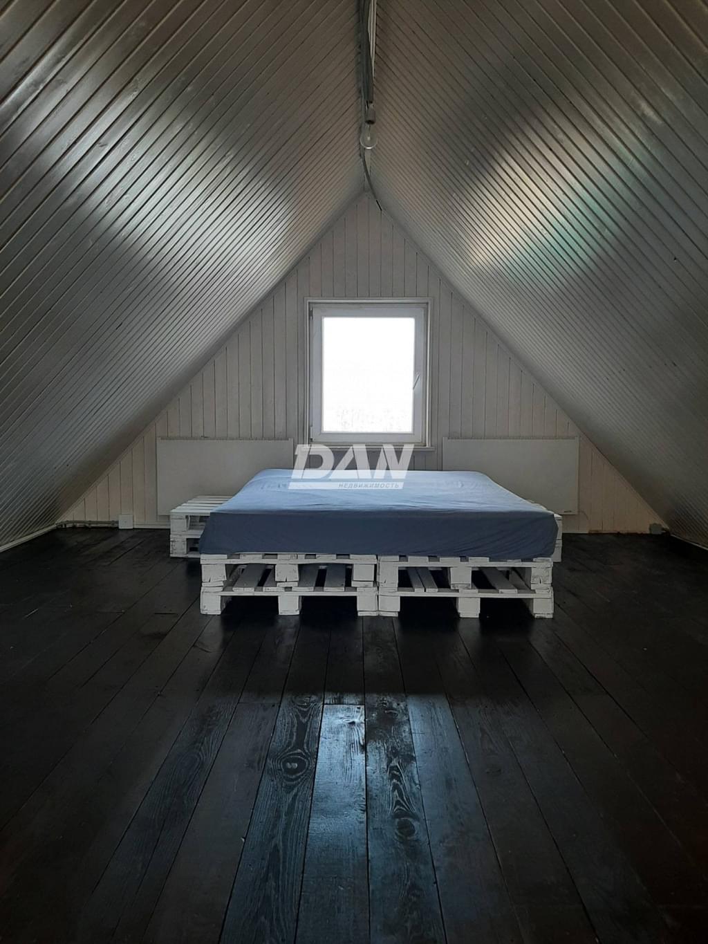 На первом этаже кухня-гостиная, ванная комната и спальня. На втором этаже проложена электрика. Планировалось зонирование на 2 спальни.